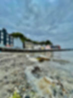 Sunday morning, we reluctantly woke early and packed, eating a hearty breakfast before getting on the road for our 4-hour drive back to Falkirk. Once we checked out and our luggage was loaded in the car, we decided to go down to the castle’s rocky beach to see the fortress from its northerly side. A short staircase and dirt path led us down to the sand, where, if time permitted, you could walk for a ways along the coast. We hadn’t built that into our timeframe, so we took 30 minutes to collect a few shells and take some photos.